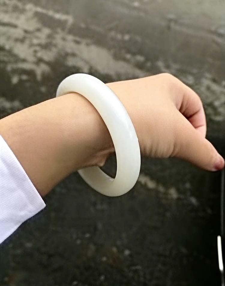 若这三款为白底色,价格减半;若为灰底色、暗绿色,价格再减——和田玉看色,核心是“温润纯正、浓艳均匀”,无色则拼玉质,玉质差则无价值。下图是两三百元的入门级手镯,质地细腻但油润度一般,而很多人花两三千买的手镯,实则就是这个品质,商家常以“天然真料”洗脑,如今信息透明,选玉靠渠道和认知。想精准匹配“预算+品质”,避免花冤枉钱,可加微信:点击联系我们