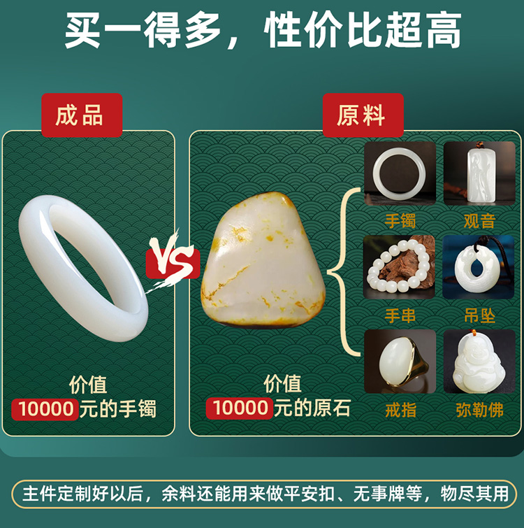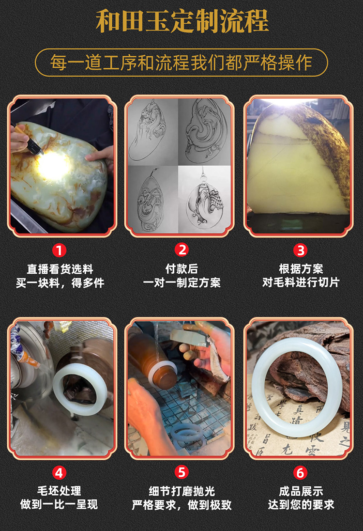 我们以一手价格拿下和田玉原石,结合料质特点设计、打磨、加工,全流程自主完成,每日在朋友圈更新不同款式的和田玉饰品、摆件,涵盖亲民款到收藏款。